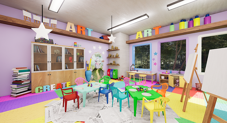 - Created 4 detailed sets in Unreal Engine, all based on a specific school subject -